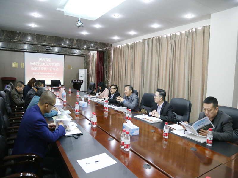 4月15日,马来西亚南方大学学院祝家华校长一行5人来访beat365,商讨校际合作项目,beat365手机版官网校长甄忠义在综合楼会议室接待来宾。