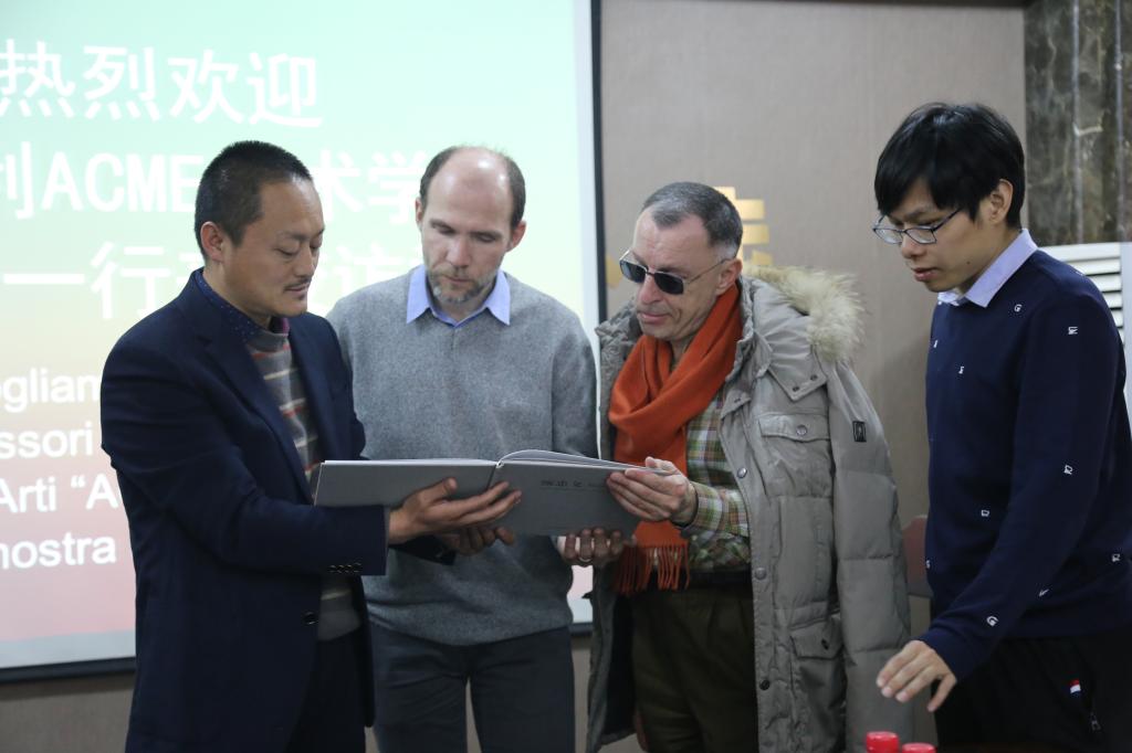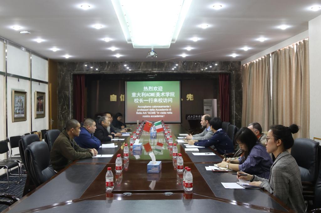 2018年3月13日,意大利米兰ACME美术学院副院长Previde Prato Lorenzo先生一行5人来访beat365,商讨合作办学事宜。beat365校长甄忠义及有关部门负责人在综合楼会议室接待来宾。