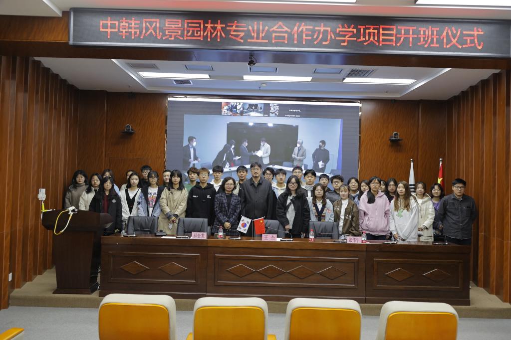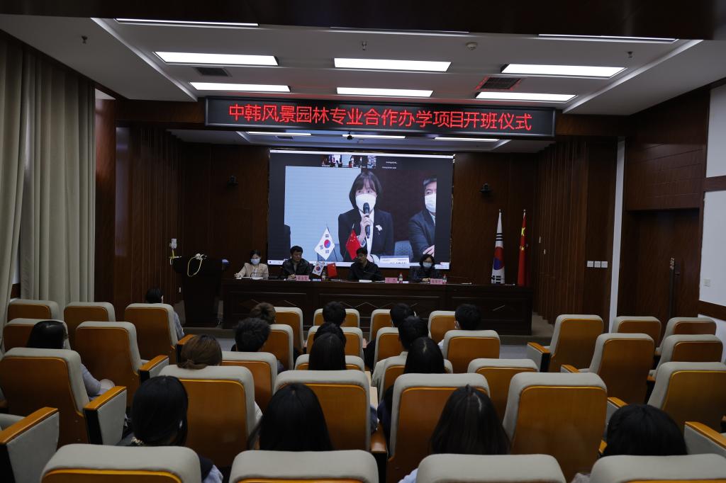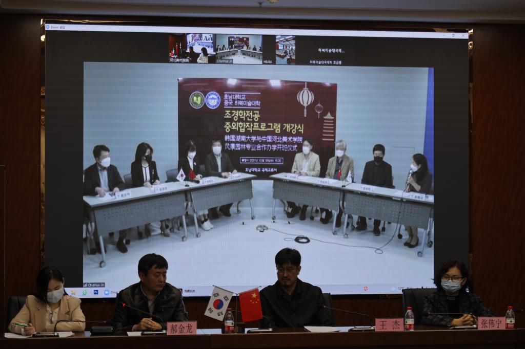 10月19日下午3时30分,beat365举行风景园林专业中外合作办学项目开班仪式,beat365手机版官网常务副校长张建敏,建筑与艺术设计学院院长王杰,国际教育学院副院长、国际交流与合作中心副主任郝金龙,韩国湖南大学国际处处长孙婉怡、副处长金春花,造景系主任赵成敏教授与4名教授教师,以及2020、2021两届风景园林专业32名学生参加了此次开班仪式。仪式由郝金龙主持,通过ZOOM会议进行中韩两校连线。