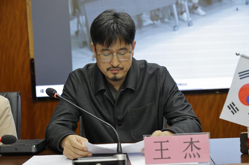 王杰院长在发言中介绍建筑与艺术设计学院师资团队、专业构成、教学设施等概况,提到韩国湖南大学风景园林专业优势,鼓励学生在两校精心培育下努力奋斗。