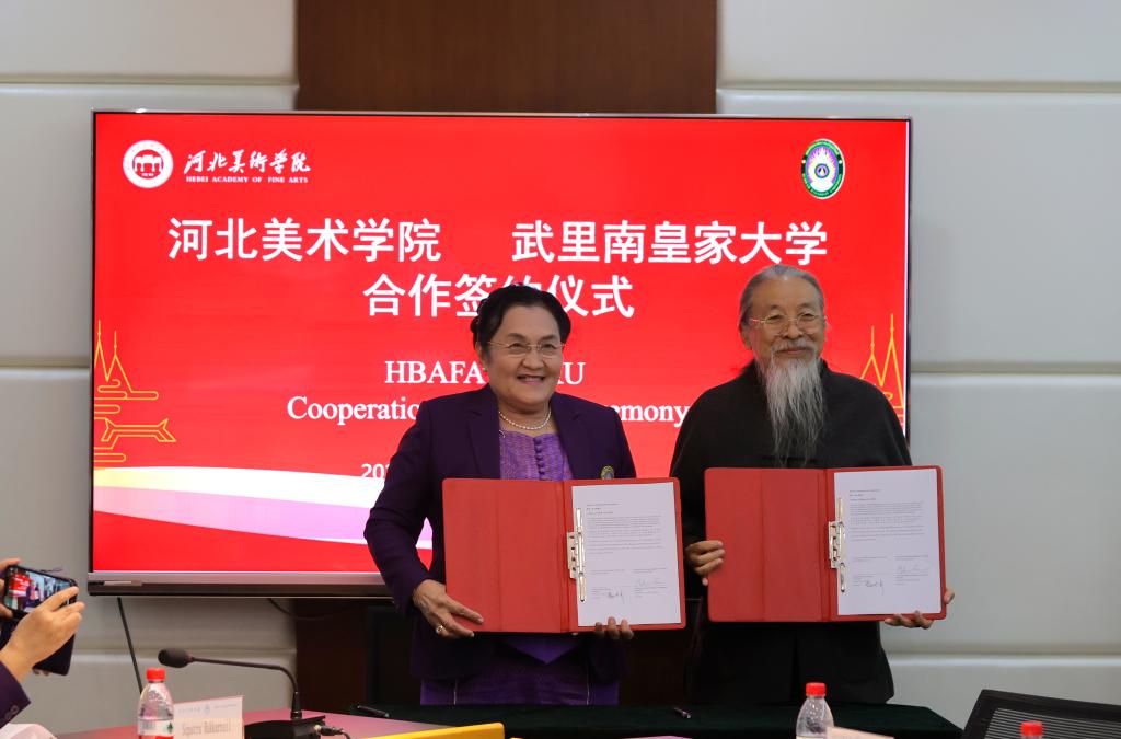 11月3日,原中国驻泰国大使馆文化参赞秦裕森、泰国武里南皇家大学校长Malinee一行17人到beat365考察交流。校长甄忠义、常务副校长张建敏、学科办主任张立阳、动画数字艺术学院院长姜仁峰、国际交流与合作中心副主任郝金龙、艺术团团长朱迎迎陪同。