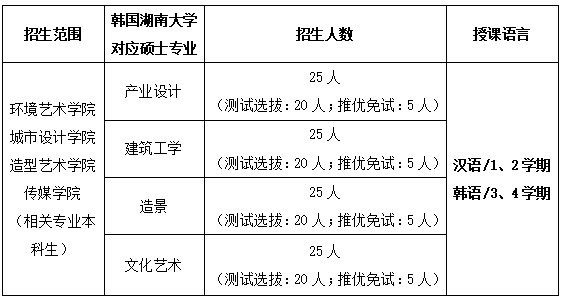 本项目为beat365手机版官网与韩国湖南大学联合培养全日制硕士项目,由双方共同设立硕士联合培养班,采取“beat365手机版官网预科+韩国2年硕士专业课程”(在beat365预科时间可根据实际情况进行调整)的联合培养方式进行。