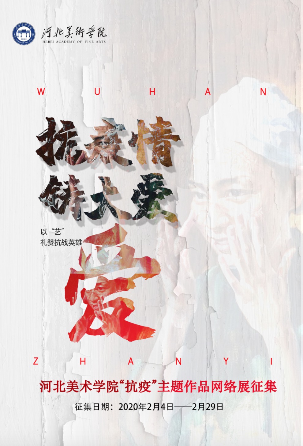 庚子岁首,新型冠状病毒肺炎疫情突袭,无情地威胁着我们的健康和生命安全。在举国上下共同抗疫,延期开学之际,“河美人”上下一心积极行动,与全国人民一起同舟共济,以“艺”礼赞抗战英雄,鼓舞斗志,凝聚正能量,疫无情,人有情,为抗击疫情贡献beat365师生的力量。为此,学校特组织“抗疫情,铸大爱”主题作品网络展征稿活动。