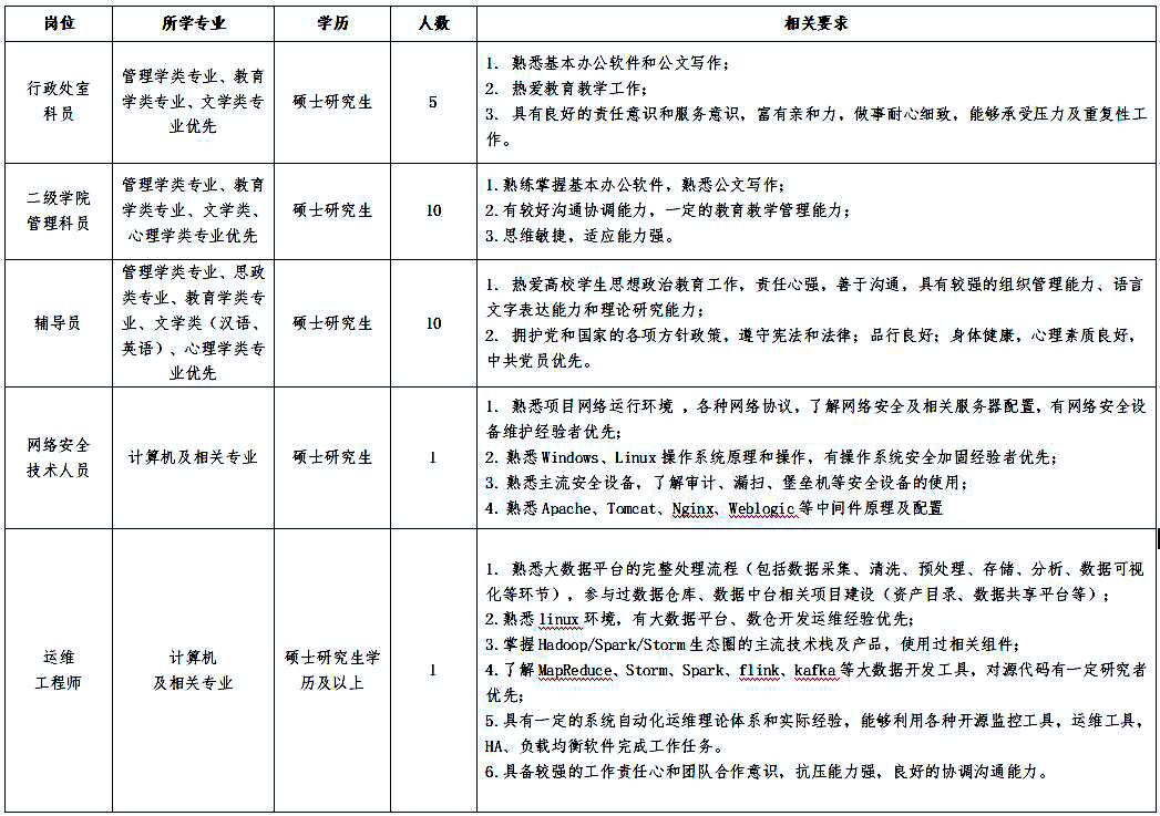 beat365手机版官网是经教育部批准设立的民办全日制普通本科艺术类高校。学校始建于2002年,2015年获批学士学位授予权,2016年获批硕士学位授予立项建设单位,2019年通过了国务院教育督导委员会本科教学工作合格评估。学校设有党政办公室、党委组织部(党校)、宣传统战部(新闻中心)、教师工作部(教务处)、学生工作部(处)、武装部、团委、人事处(考核督查工作领导小组办公室)、科研处、学科建设办公室等26个党政机构。设有造型艺术学院、书法学院、设计学院、影视艺术学院、动画数字艺术学院、雕塑与公共艺术学院、国际教育学院等7个二级学院,在校生27000余人。学校主动适应区域经济和社会发展对艺术人才的需求,不断优化专业布局。根据beat365教育教学工作需要,拟面向社会公开招聘行政科员与辅导员。现将有关事项公告如下: