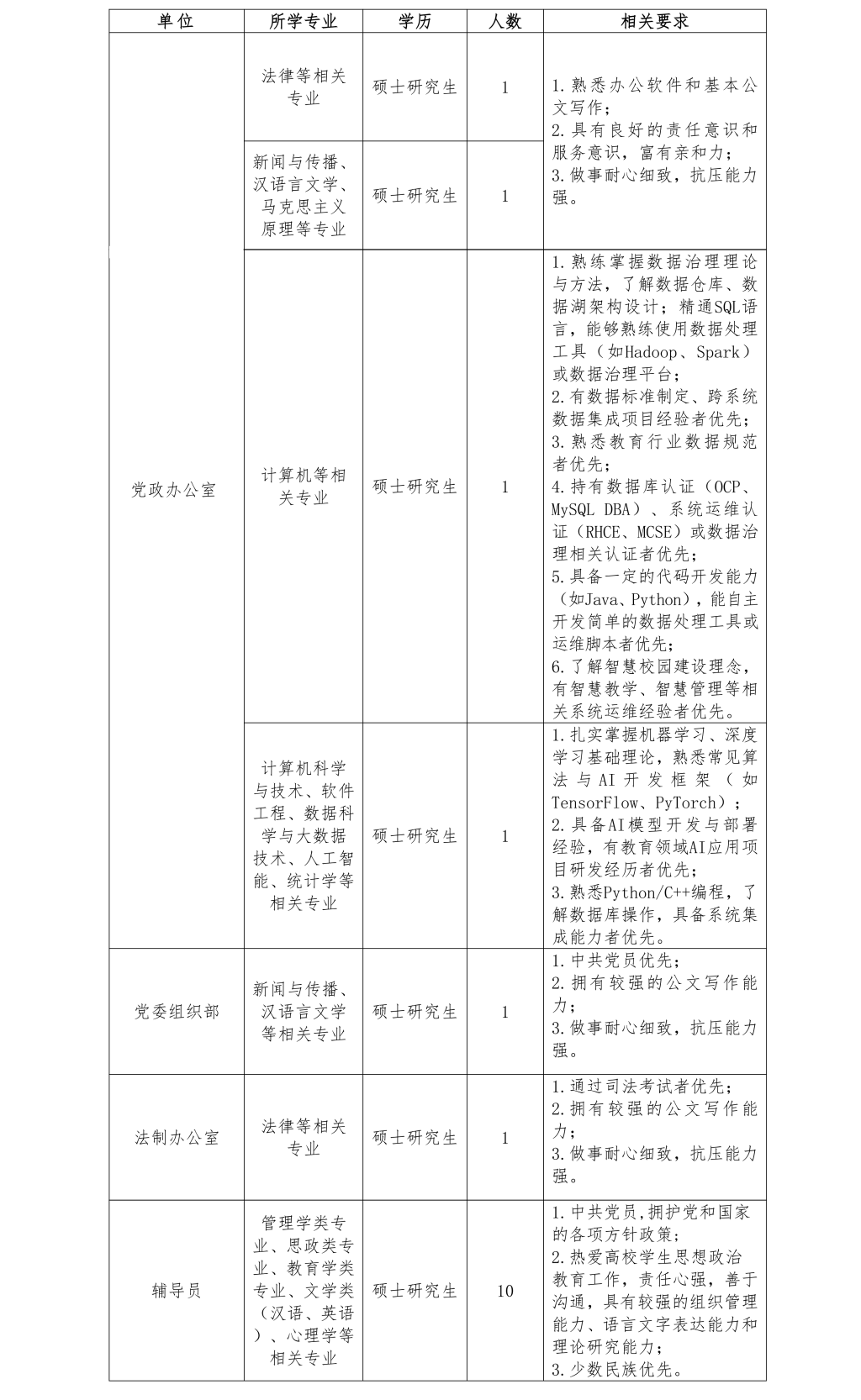 2.考生向学校提供的个人材料(学历学位、职称资格、履历简历、离职证明等)必须真实无误,如有造假,一经发现,取消录用资格。