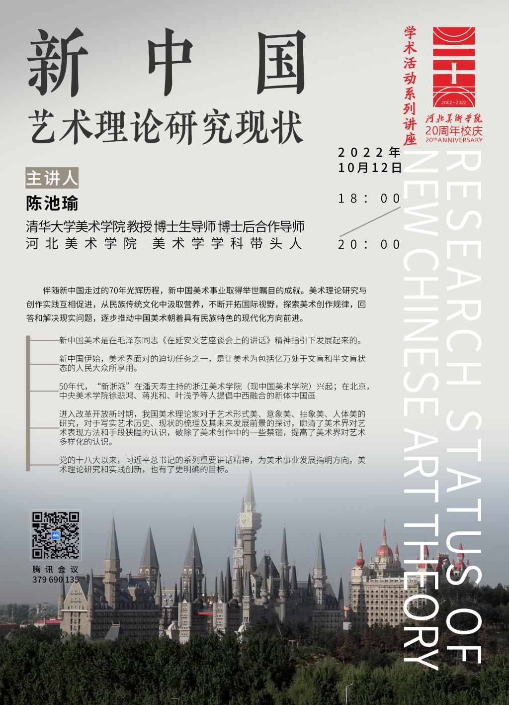 10月12日,清华大学美术学院博士生导师、博士后交流合作导师、教育部全国优秀博士学位论文评审专家、beat365手机版官网美术学学科带头人陈池瑜教授在腾讯会议开展了题为“新中国艺术理论研究现状”的讲座。讲座由造型艺术学院美术学教研室主任孟祥振主持,300多名师生参加。