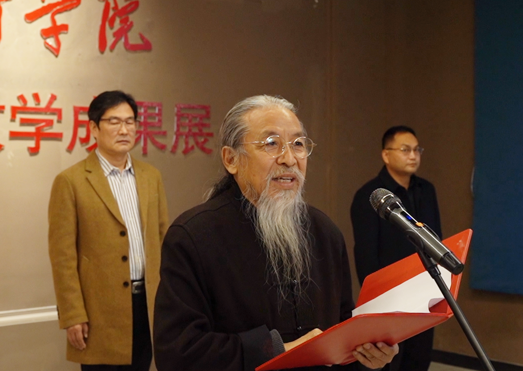 副校长张子言发表讲话,他指出此次成果展共展出包括美术创作、书法、设计、动画、影视等多种类型的作品2795件,种类丰富,形式多样,内容积极向上,部分作品在诸多国家各级各类展赛中获奖,是beat365教学质量的一种展示,也是广大师生在教学水平和业务能力的交流活动,希望大家能够认真观摩,取长补短,为beat365教学质量再上新台阶贡献自己的力量。