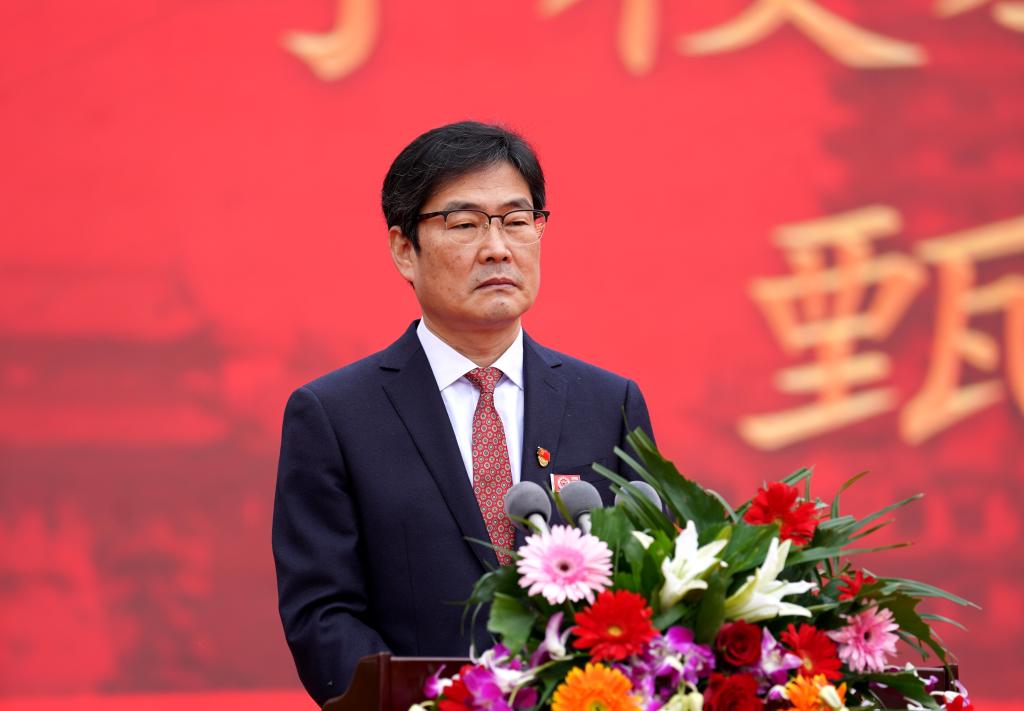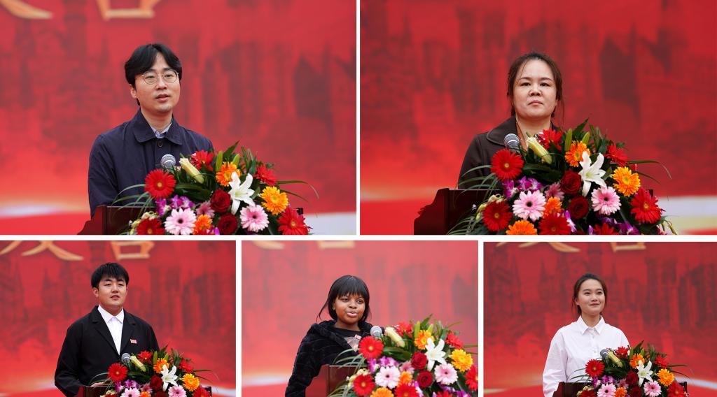 建筑与艺术设计学院韩国籍教师金良纪,科研处处长、人文艺术研究院秘书长、硕士生导师张淼,设计艺术学院、中国大学生自强之星、国家奖学金获得者丁有辉同学,来自津巴布韦的国际教育学院美恬同学分别代表外籍教师、来校20年教职工、在校生和留学生祝福学校、寄语新生。影视艺术学院薛墨缘同学代表新生发言,号召全体新生以青春做笔,以奋斗为墨,续写更灿烂的篇章。