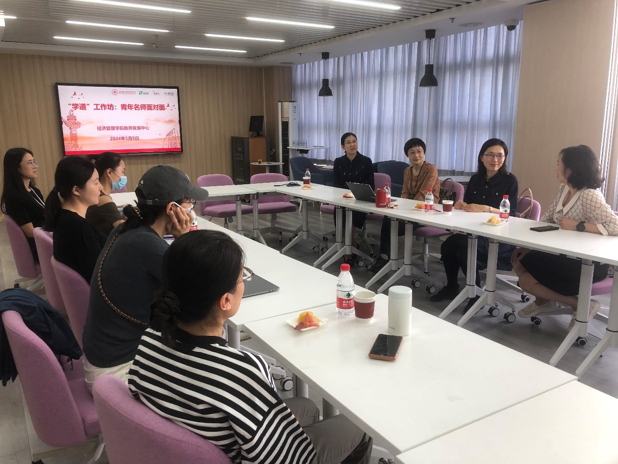 5月9日下午,永利集团88304官网在线登录教师发展中心在经管课栈(经管楼1205)举办题为“青年名师面对面”的“学道”工作坊,邀请北京市高等学校青年教学名师、北京科技大学数理学院储继迅教授与青年教师面对面深入交流。学院教师发展中心执行主任孙莹主持工作坊,副院长范小华参加本次交流活动。