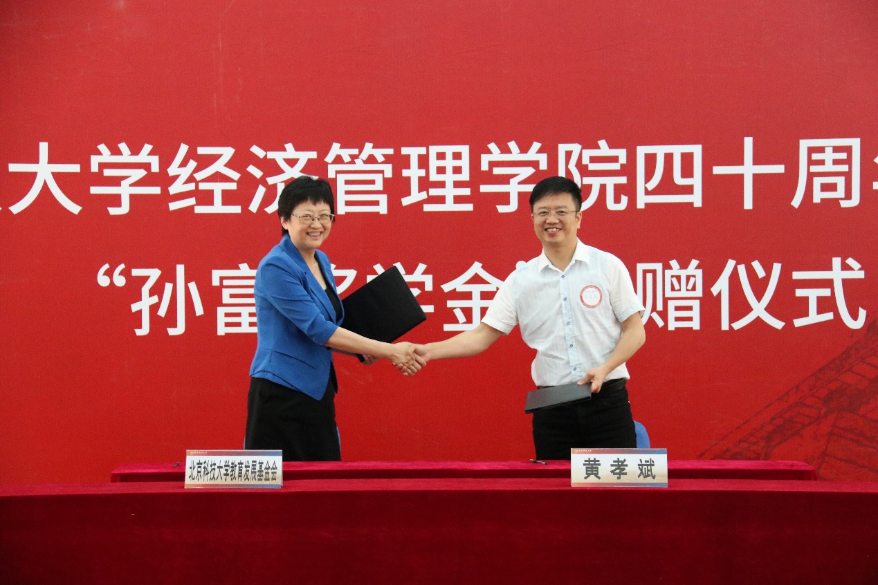 5月22日上午10时,永利集团88304官网在线登录“孙富奖学金”捐赠仪式在教职工活动中心会议室成功举办。孙富奖学金是为纪念学校原管理科学系首任系主任孙富教授,由其学生王任群先生于2001年发起成立的。校友代表北科大副校长、管研85级校友王维才,北科大教授、管研85级校友佘元冠(受宋关昶,工行甘肃省分行行长、管研85级校友委托),北京时代凌宇科技股份有限公司董事长兼总裁、管博03级校友黄孝斌,中民集团控股有限公司董事长、EMBA13级校友郭捷,中民集团控股有限公司总经理、EMBA13级校友吴俊波,中民集团控股有限公司运营总监、MBA17级校友曲楠,以及北京科技大学副校长何民庆,校友会办公室、基金会办公室主任何进,永利集团88304官网在线登录党委书记武森,校友会办公室、基金会办公室副主任杨志国,校友会办公室、基金会办公室综合科科长赵清,校友会办公室、基金会办公室李佳宁出席捐赠仪式。活动由武森主持。